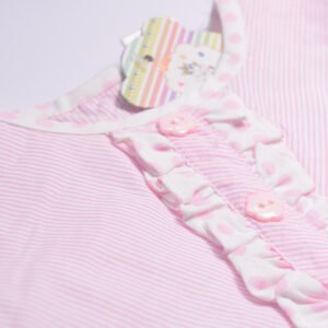 Our girl’s 100% cotton polka dots frock in pink is designed to offer both comfort and style. The charming polka dot pattern adds a playful touch, making it a perfect choice for various occasions.